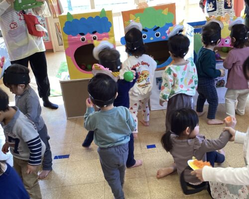 最後は豆まきゲームをしました🫘