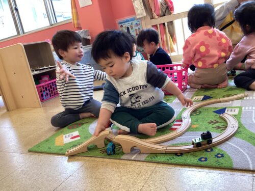 線路も上手に繋げられるようになり、線路の上を走らせて遊んでいます🚃