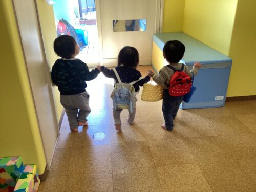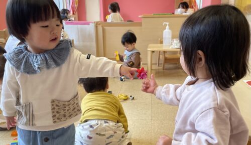 手!手!と言いながらお友だちに手を差し出して誘う姿がとても可愛いです😊