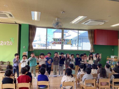 幼児クラスでは、各クラス1名ずつの、3名のお友だちがお誕生日を迎え、お祝いしました🎉