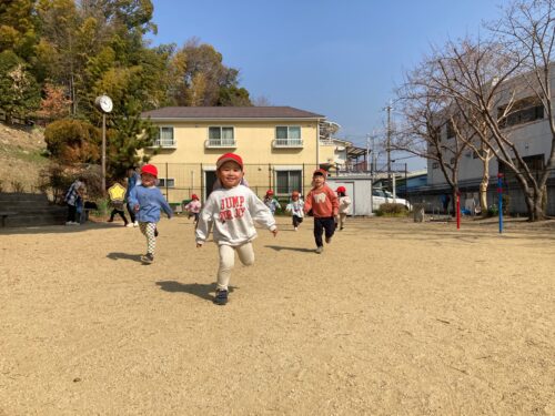 広場で思いっきり走って身体をいっぱい動かしています😀