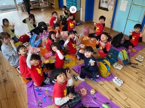 子どもたちには、「お家で中身を開けてみてね!」と伝え、お家に帰るまでのお楽しみになり、