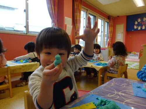 粘土遊びでは1時間ぐらい集中して取り組んでいます。