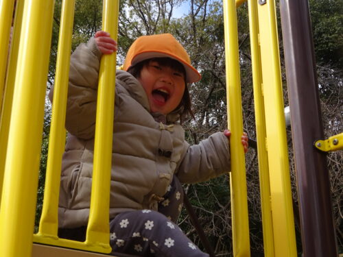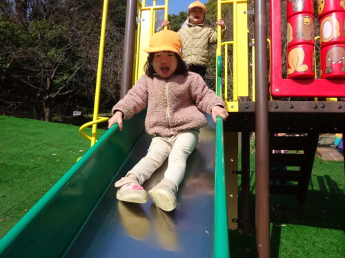 道中では、「公園で何して遊ぶ~?」と聞くと「すべりだいする~!」と嬉しそうに教えてくれます‼