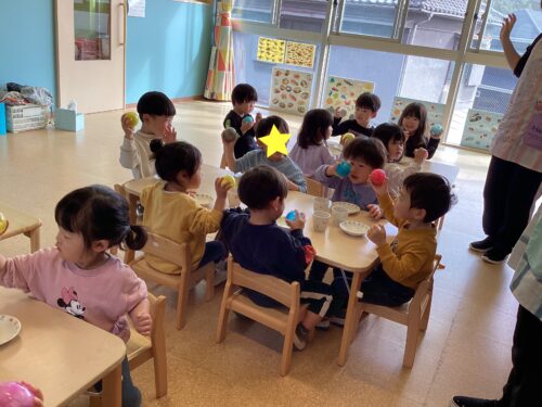 「おにぎりになるかなぁ?」「ふりふり楽しいね」と楽しそうな声が聞こえてきます💕