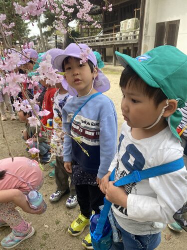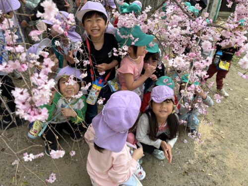 「さくらのやねだ〜!!」と桜の木の下に潜り、ニコニコ笑顔の子どもたち😄💕