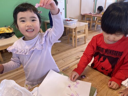 みんなでそばに落ちていたお花を持って帰り、押し花を作ることにしました😊