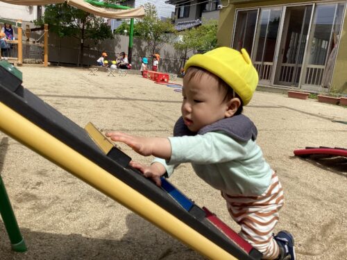 大型遊具にも挑戦し、一生懸命手脚を動かして登っています😳