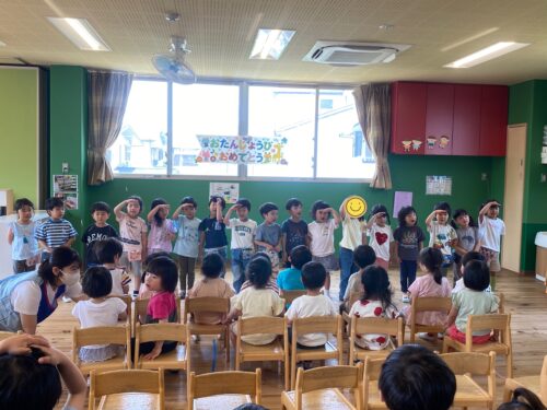 4月の誕生会に参加できなかったお友達も合わせて、8名のお友達をお祝いしました🎉