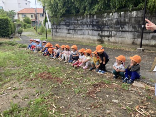 シャボン玉が終わり、「よーいドンする人〜?」と聞くと、みんなで「はーい🙋♀️」と言い、一列に並びました!