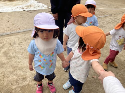 勇気を出し「いっしょにいこう〜!」と手を差し伸べ、小規模保育園のお友だちと手を繋ぎながら散歩しました🌱