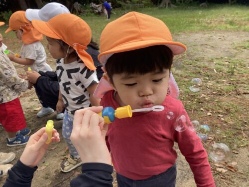 シャボン玉を追いかけて「パチン👏🏻」したり、「ふーできたよ🫧」と自分でシャボン玉を飛ばしたりとたくさん楽しみました😊💕