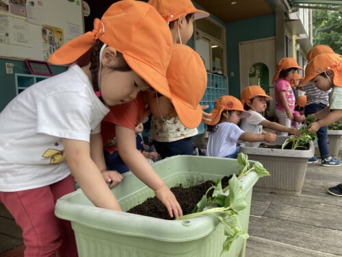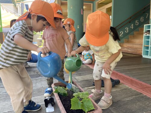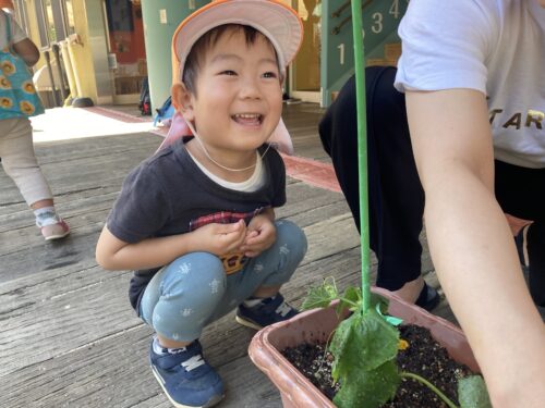 今月は、食育の一環で、さつまいもや、キュウリの苗を植えました🍠🥒