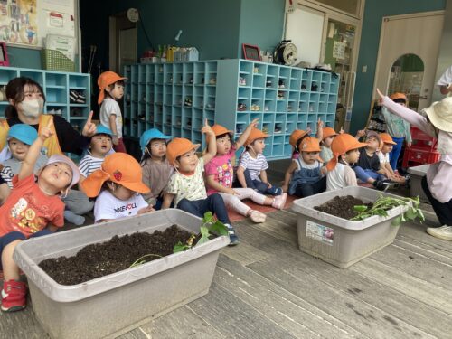 「植えてみたい!」「おおきくなあれってする!」と言う子もいれば、「おいも食べたいなぁ」「もう食べれるん?」と反応も様々🤭
