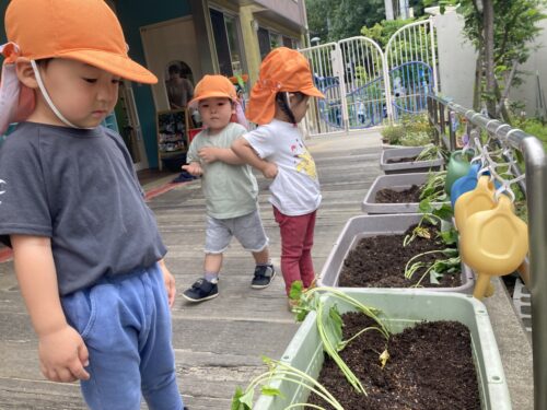 大きくなったかな?と園庭に出るたび観察するのが、今のあめ組さんの日課になっています♩