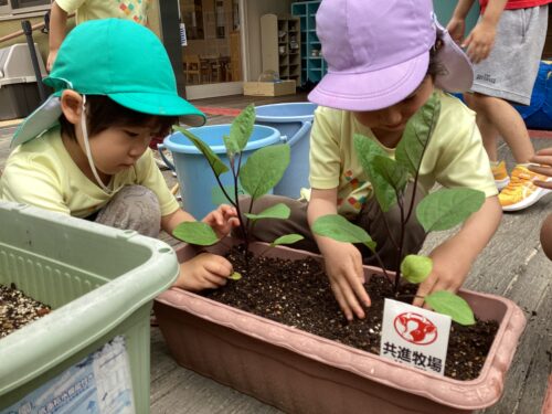 「僕らのチームたくさんトマトできてほしいなぁ〜」「ナスで何作るんやろー?」と