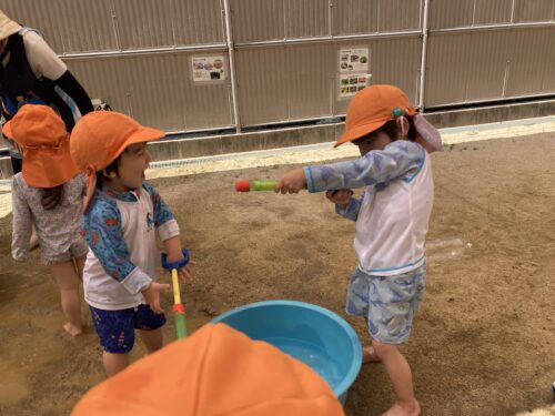 水鉄砲やバケツで遊ぶのが大好きな子どもたち☺︎
