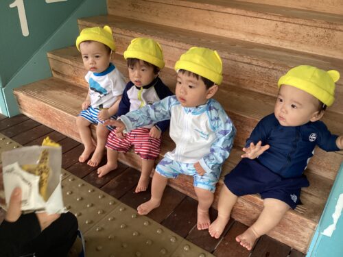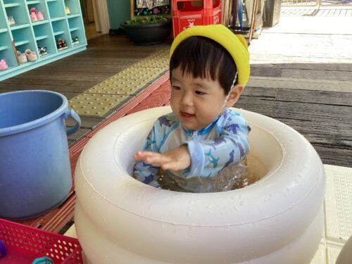 水着に着替えるとワクワクした表情が見られ、プール遊びにも慣れてきたうみ組さん🪼