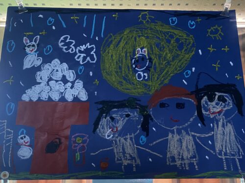 そら組、くじら組それぞれ子どもたちが描いた描画をいくつか紹介します☺️