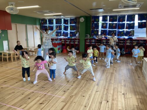 にこにこ笑顔がかわいいハチさんのダンスをしました🎵ダンスが大好きなあめ組のみんなは、「ハーニー🐝」口ずさみながらとても楽しそうに踊っていましたよ😄