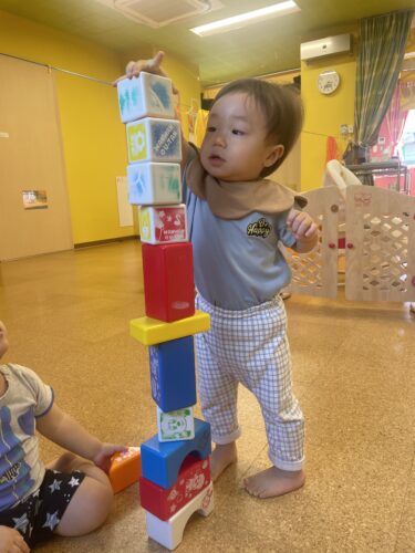 ブロックも上手に積めるようになってきてお友だちとの協力プレイも増えました👏🏻