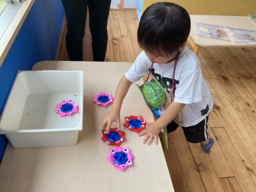 ここにはいろいろな感触のおもちゃを置いています🎵