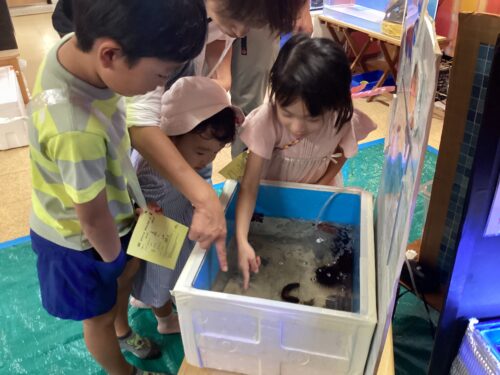 エイやサメ、なまこやザリガニなど、いろいろな生き物がたくさんいて