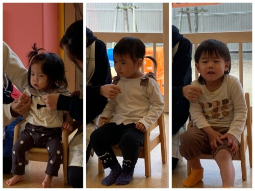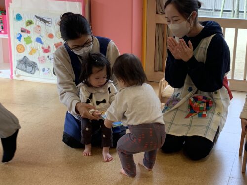 うみ組(0歳児)1名、あめ組(2歳児)2名のお友達をお祝いしました🎂✨