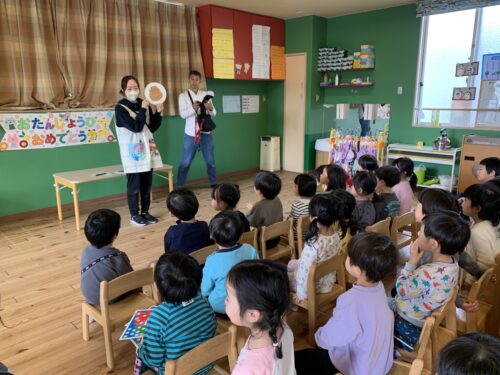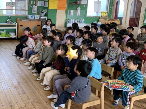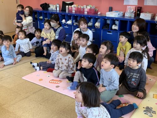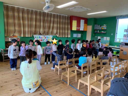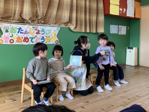 にじ組(3歳児)2名、そら組(4歳児)1名、10月の誕生会をお休みしていたくじら組(5歳児)1名のお友達をお祝いしました🎂✨