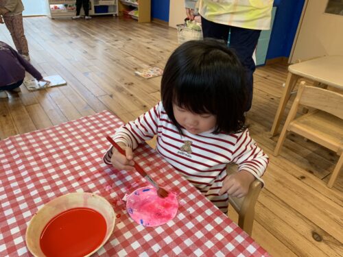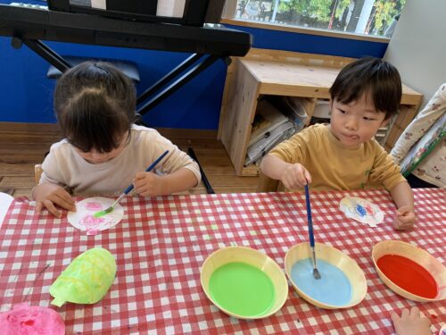 にじ組さんには、オーナメントを作ってもらいました☺️クレヨンで描いた上に、絵の具を塗ってはじき絵をしてもらいました!可愛らしい個性あふれるオーナメントができあがりました^^