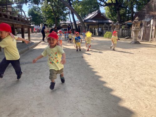小規模のお友達と一緒に猪名野神社で遊ぶことができて楽しかったようで、これからも機会を作って遊びたいと思います。