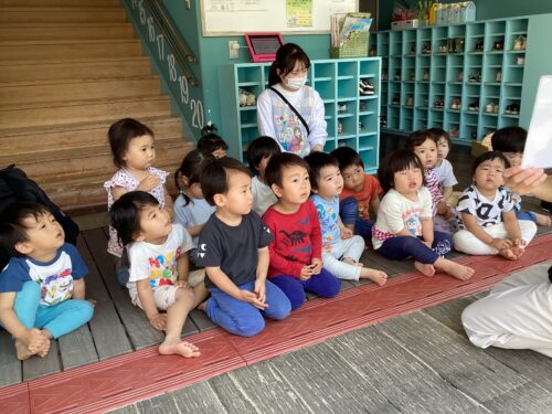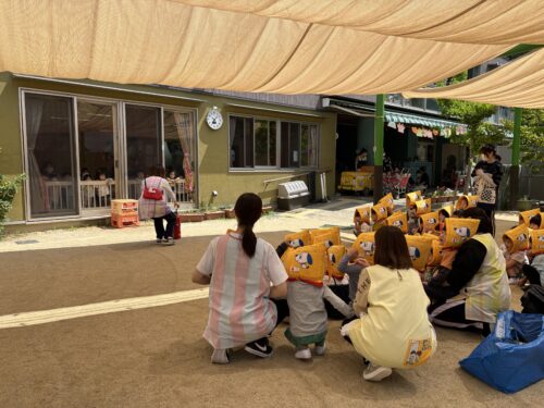 と放送が聞こえると、保育士と一緒に上手に園庭やテラスまで避難することができました☺️