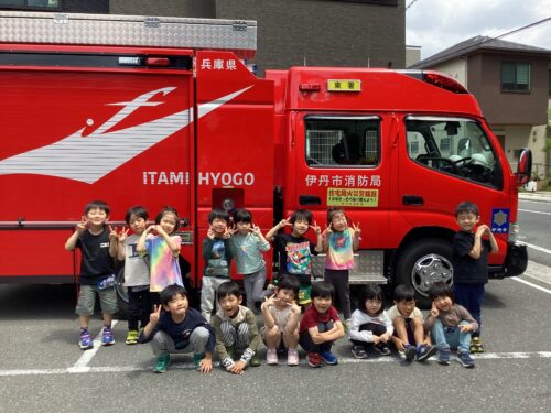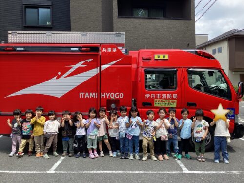 いつも絵本や図鑑で見ている消防車を目の前で見ることができて大喜びの子どもたちでした!