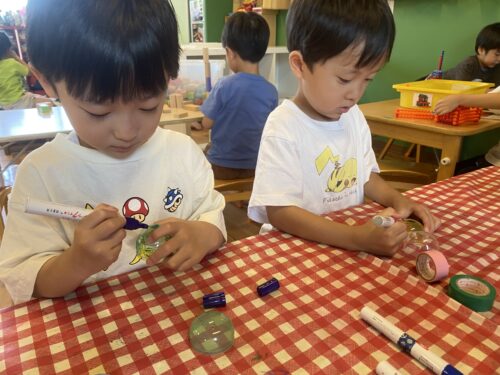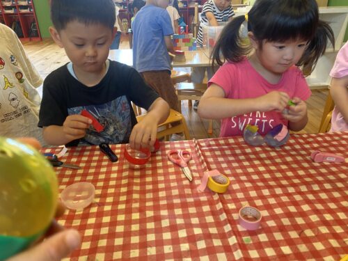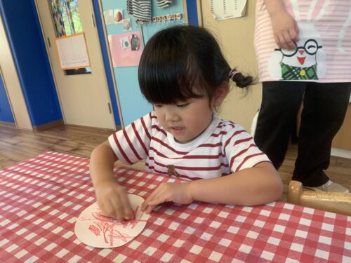 今回は園庭と階段に飾っている風鈴製作の様子をお伝えします✨
