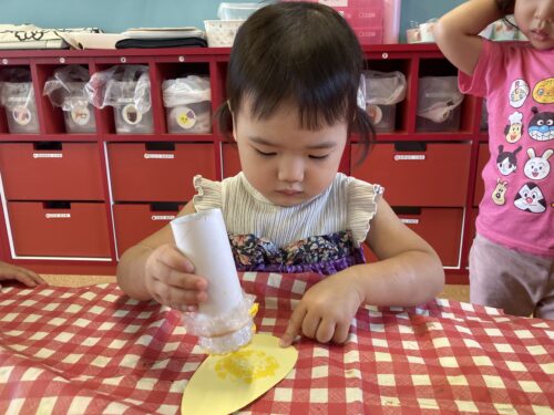 梱包材のプチプチをトウモロコシの粒に見立ててスタンプ!