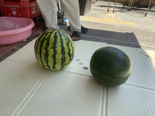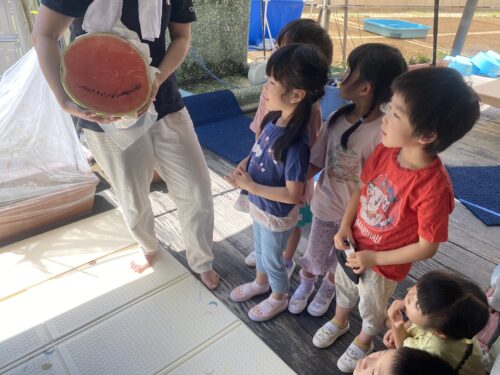 スイカ割りを楽しんだあとは先生に切ってもらい、みんなで美味しく食べました😋