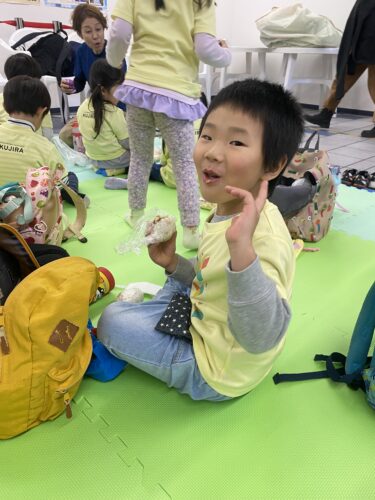 たくさん遊んだあとは「おなかすいたー!」「おにぎり楽しみー!」と